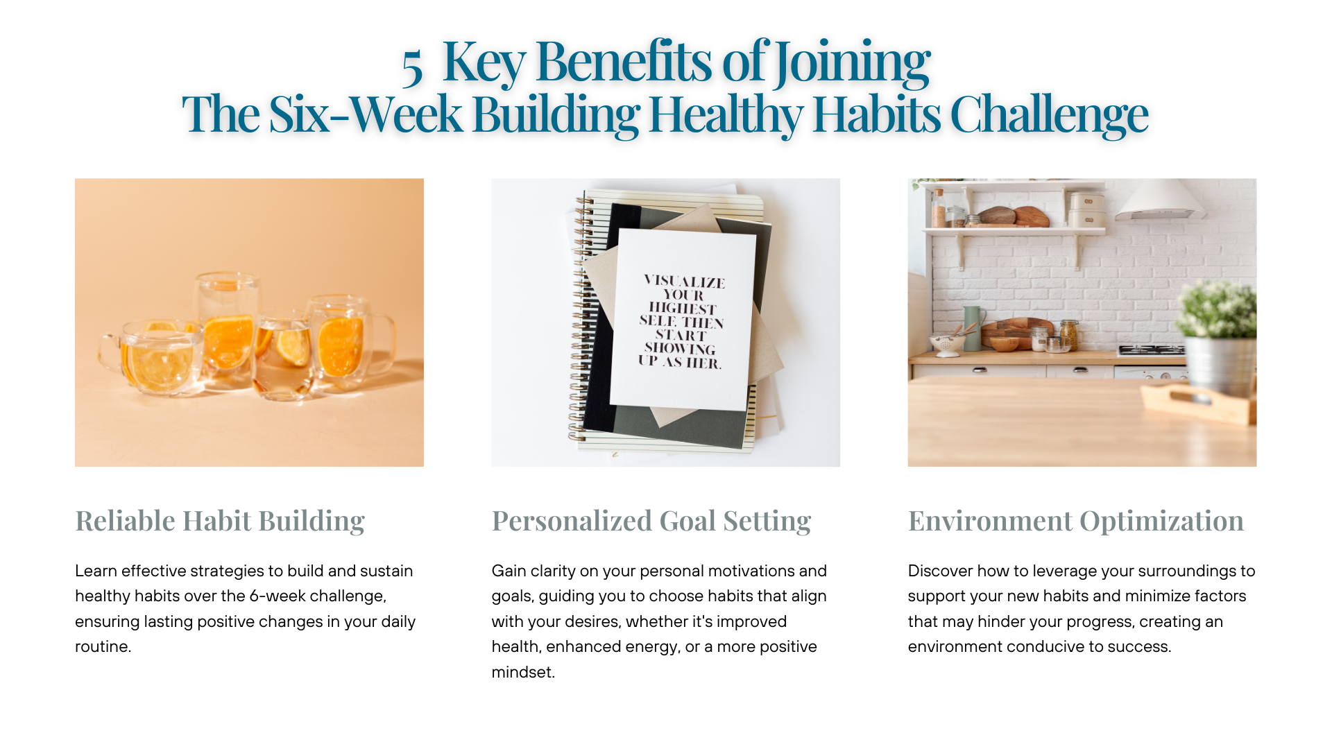 Join the Challenge Now Ready to Build Healthy Habits? Sign Up Here! Join the Challenge Now Stay inspired and informed! Sign up for our mailing list to receive weekly doses of motivation, upcoming challenge details, and exclusive workshop announcements. Be the first to know and join our community of thriving individuals! Email Address Sign Up Thank you!